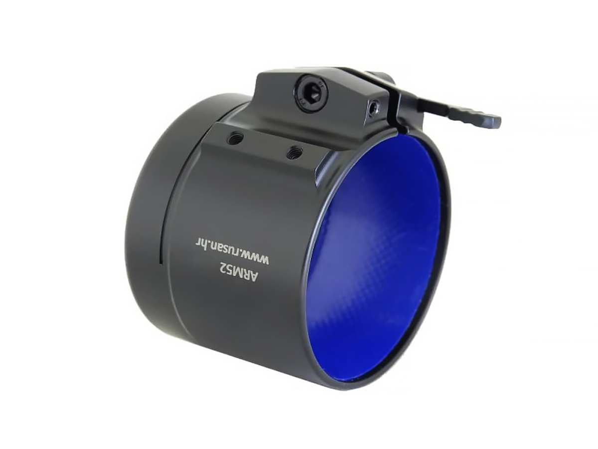 Rýchloupínací adaptér Rusan QR vhodný pre termovízne predsádky a nočné videnia so závitom 52 mm (M52x0.75). Ľahká a odolná konštrukcia z leteckého hliníka. QR páčka umožňuje presne, spoľahlivo a zároveň rýchlo nasadiť nočné videnie alebo termovíziu na optiku denného puškohľadu. Možnosť jemného doladenia prítlaku upínacou svorkou s presným nastavením v rozsahu 0,2 mm. Perfektné lícovanie zaručuje tuhosť a stabilitu uchytenia na optike. Ochranná páska chráni puškohľad proti poškriabaniu. Testované na lovecké zbrane .338 Mag a .416 TYR.