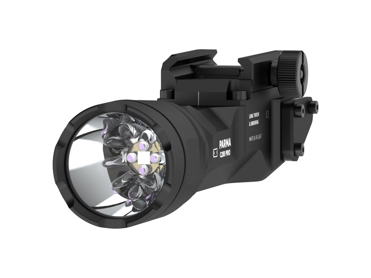 Armytek Parma C2IR Pro je taktická baterka 2v1 s dvomi typmi svetla (biele + infračervené). Má integrovaný držiak na Picatinny/Weaver lištu pre beznástrojovú inštaláciu na pušku alebo karabínu. Biele svetlo umožňuje efektívne vykonávanie štandardných úloh, zatiaľ čo infračervené (neviditeľné voľným okom) slúži na riešenie špeciálnych úloh s použitím nočného videnia (noktovízora). Veľké tlačidlo umožňuje jednoduché bezhlučné stlačenie aj v taktických rukaviciach. Páčka slúži na rýchle prepínanie medzi bielym/infračerveným svetlom a zablokovanie proti náhodnému zapnutiu. Ľahké a robustné telo z leteckého hliníka s odolnosťou IP68 a matným antireflexným čiernym antiabrazívnym povrchom. Multifunkčný diaľkový spínač s možnosťou stáleho alebo taktického spínania. Armytek Parma C2IR Pro odolá spätnému rázu akejkoľvek strelnej zbrane a je vhodný jak pre lovcov tak pre špeciálne jednotky.