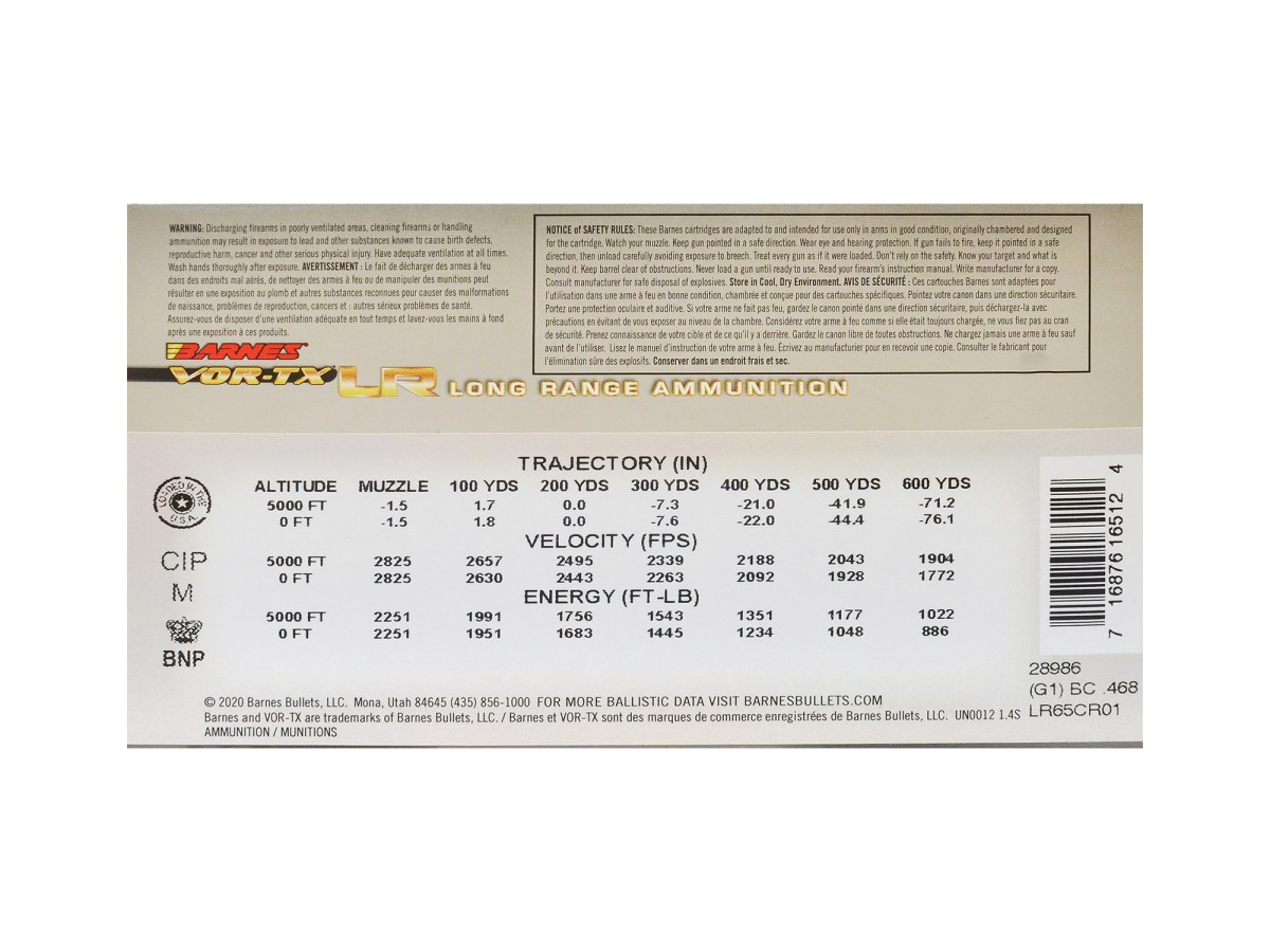 Toto strelivo je nabité prémiovými celomedenými guľkami Barnes LRX špeciálne navrhnutými nielen pre presnosť na dlhé vzdialenosti, ale aj pre bezkonkurenčnú účinnosť.