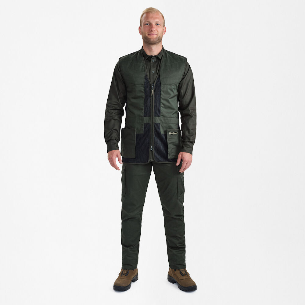 Elastická guma na ramene a páse poskytuje pohodlie a priestor pre pohyb. Na ochranu proti spätnému rázu má vesta vystuženú ochranu ramien a hrudníka, ako aj vstavané vrecká na chrániče proti spätnému rázu. Účelne navrhnuté vrecká zaisťujú efektívne uloženie streliva a nezbytností pre strelecký deň. Veľké zadné vrecko a dve priestranné predné vrecká vám umožnia mať všetko potrebné na dosah ruky. Strelecká vesta Atlas zo sieťoviny šitá na mieru pre mužov aj ženy predstavuje pohodlnú praktickosť pre precízne zameraných lovcov na strelnici.