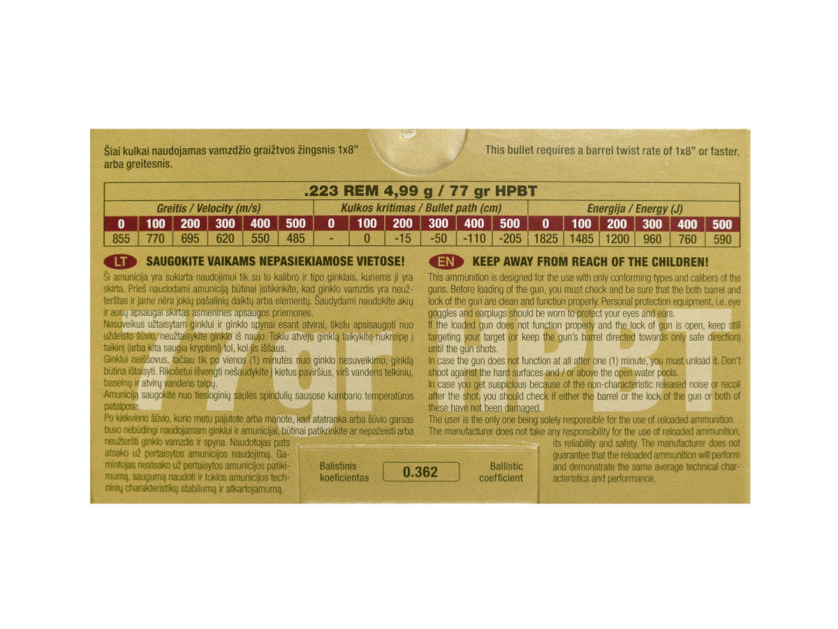 GGG .223Rem. 77gr/4,99g HPBT Sierra MatchKing (GPR14)