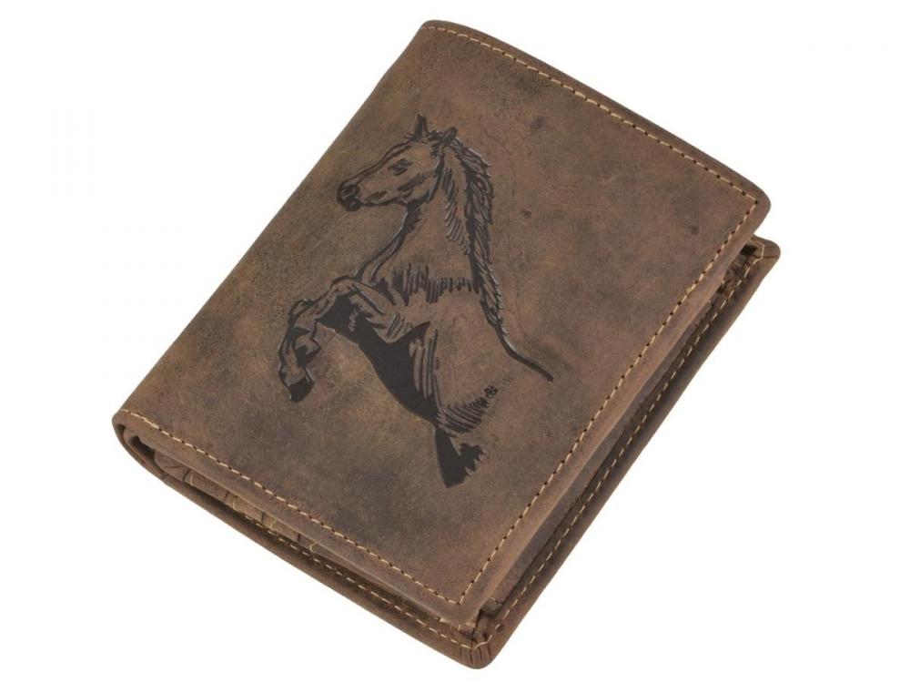 Pánska peňaženka z kvalitnej brúsenej kože Greenburry 9,5x12cm s razbou koňa. Ručná výroba. Farba hnedá.