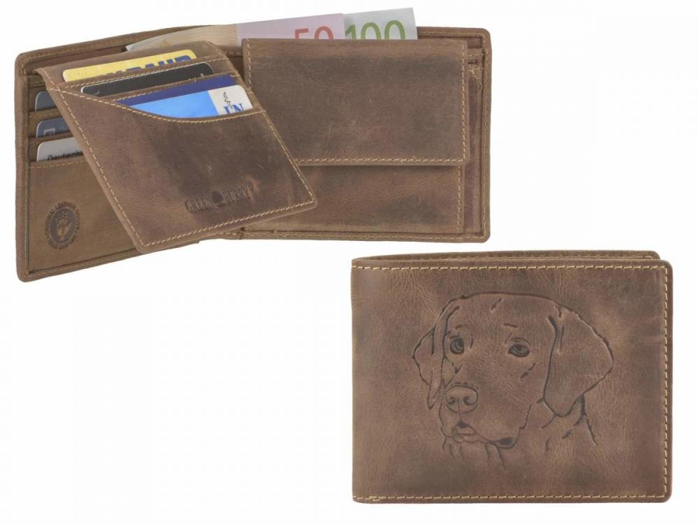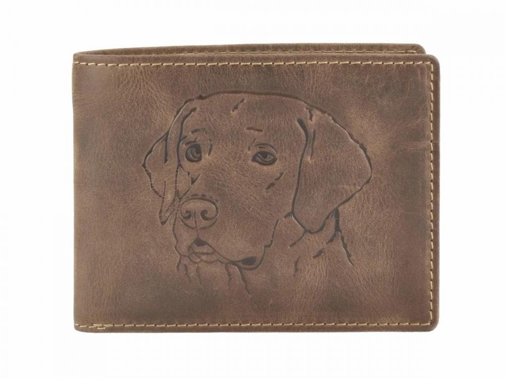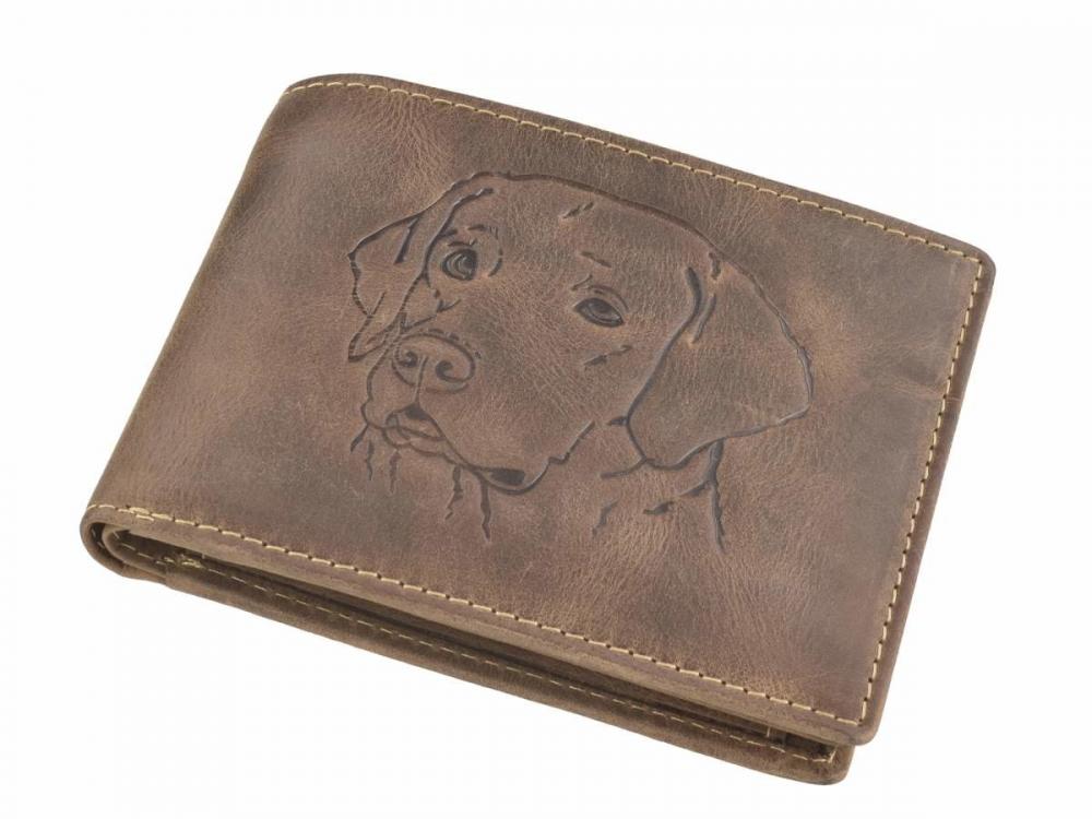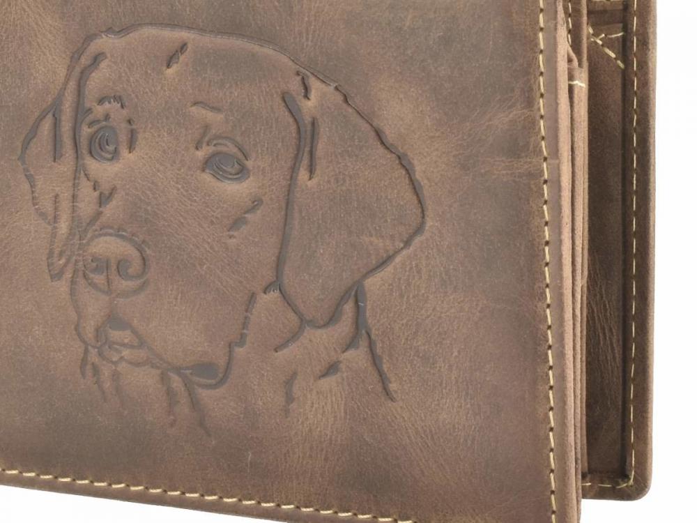 Pánska peňaženka z kvalitnej brúsenej kože Greenburry 12,5×9,5cm s motívom psa. Ručná výroba. Farba hnedá.