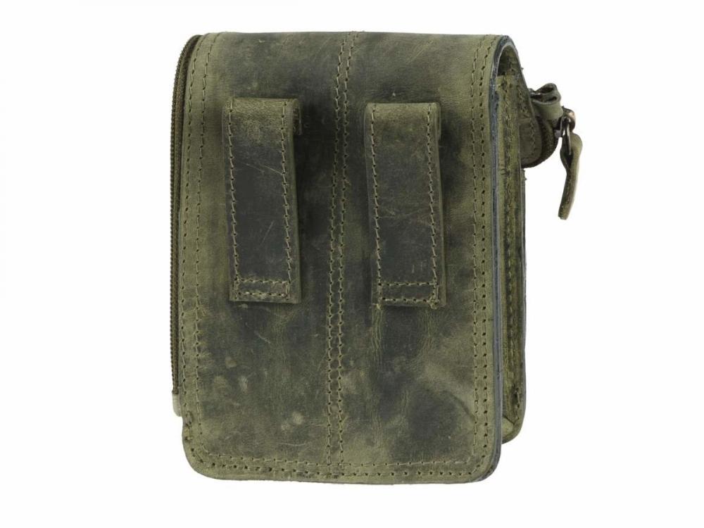 Pánska taštička z kvalitnej brúsenej kože Greenburry 10,5×13,5×6,5cm. Ručná výroba. Farba zelená.