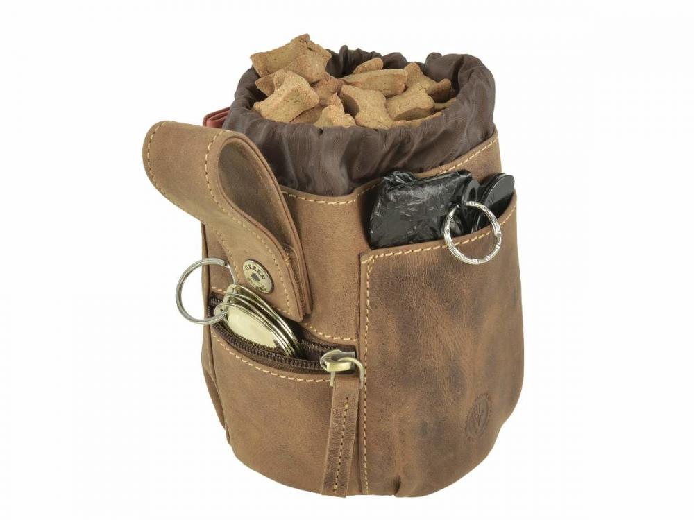 Kvalitná kožená kapsa na krmivo pre psy od Greenburry.