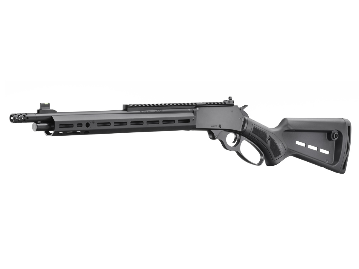 Marlin Dark Model 336 má modernú, nylonom vystuženú polymérovú pažbu s pripevňovacími otvormi M-LOK® a zapustenými objímkami pre QD pútka a veľkorysou gumovou botkou, ktorá účinne absorbuje spätný ráz. Eloxované hliníkové predpažbie vybavené upevňovacími otvormi M-LOK® na montáž príslušenstva. CNC opracovaná páka na prsty je strednej veľkosti. Hlaveň z legovanej ocele je kovaná za studena, čo poskytuje výnimočnú presnosť a dlhú životnosť a je už z výroby osadená radiálnou úsťovou brzdou. Hlavné komponenty sa vyznačujú zvýšenou odolnosťou vďaka povrchovej úprave Graphite Black Cerakote®. Nastaviteľné zadné mieridlá sú skvelé na rýchle zacielenie zatiaľ čo predná muška z optických vlákien s tríciovým krúžkom zabezpečuje dobrú viditeľnosť aj v zlých svetelných podmienkach.