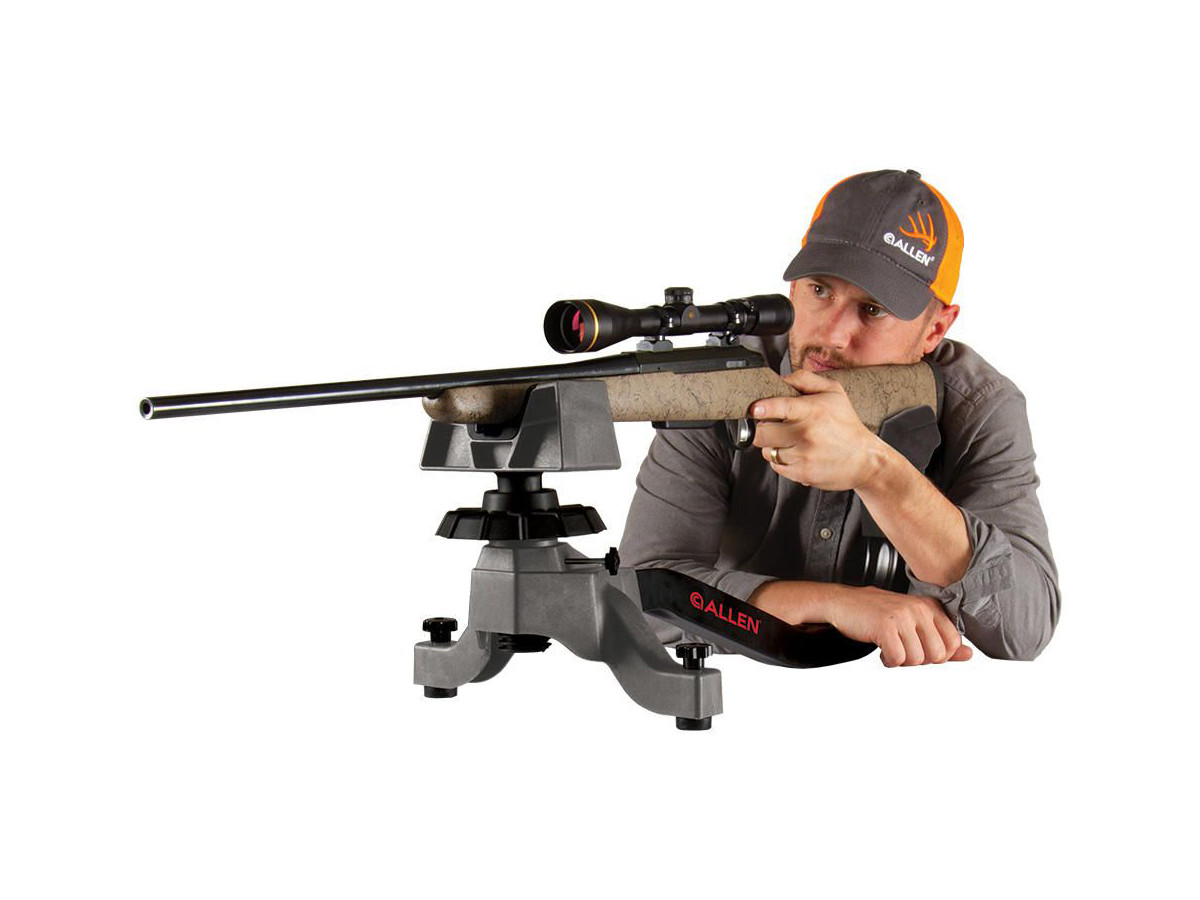 Strelecká opierka pre dlhé zbrane s predným statívom z vysoko pevného polyméru a zadnou oceľovou nohou.
