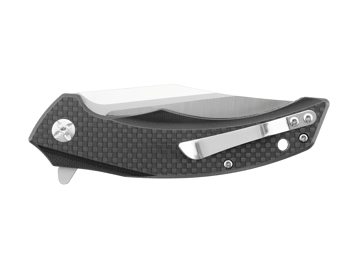 Nôž Elite Force EF174 sa prezentuje elegantne zakriveným ušľachtilým dizajnom rukoväte a pútavou 3,5mm hrubou čepeľou. Tá je uložená na guľôčkových ložiskách a je možné ju otvoriť pomocou plutvy. Vďaka linerlocku sa uzamkne a bezpečne sedí medzi vložkami z nehrdzavejúcej ocele, na ktorých je pripevnená pôsobivá rukoväť z mimoriadne odolnej zmesy G10 a karbónu.