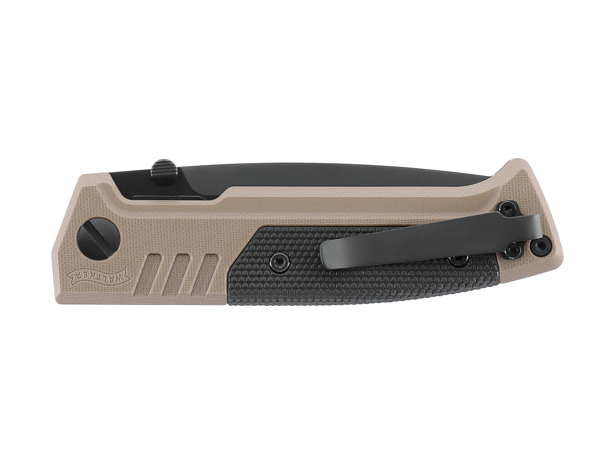 Nôž zatv. Walther PDP Spearpoint prináša atribúty úspešnej pištole Walther PDP (Performance Duty Pistol) do špičkového sveta taktických nožov. Fanúšikovia PDP a nadšenci nožov budú rovnako ohromení vybranými materiálmi a inteligentným dizajnom. Srdcom noža je saténová čepeľ Spearpoint z vysoko odolnej ocele D2. Jeho dĺžka 92 mm a hrúbka 3,6 mm ho predurčujú na náročné každodenné práce, špeciálne operácie a outdoorové aktivity. Čepeľ je držaná na mieste pomocou zámku z nehrdzavejúcej ocele a otvára sa pomocou odnímateľného dvojitého palcového kolíka. Pomôcka na otváranie je vytvorená podľa vzoru uvoľnenia zásobníka pištole Walther PDP. Podobnosť tohto noža so slávnou pištoľou je evidentná najmä v rukoväti plnej veľkosti, kde sa nachádzajú 3 výrazné drážky, rovnaké ako na závere pištole Walther PDP. Nôž je možné nosiť s obojstranným klipom pre pohotový prístup. Otvor na šnúrku je nenápadne umiestnený v zadnej časti.
