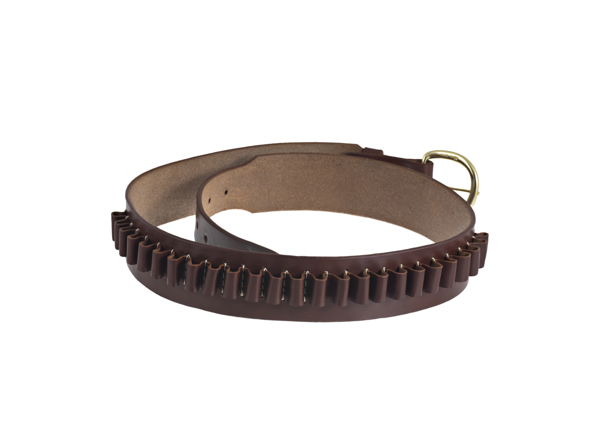 Kožený opasok na náboje vyrobený z najjemnejšej sedlovej kože, je dokonalým doplnkom pušiek Marlin. Má masívnu mosadznú pracku vo westernovom štýle a atraktívnu povrchovú úpravu z orechového oleja s vyrazeným logom Marlin. Opasok je široký 5 cm no na konci sa zužuje na 3,8 cm a obsahuje nábojové pútka pre 25 nábojov kalibru .44/.45. Veľkosť L je vhodná na obvod pása od 96 – 109 cm (odporúča sa objednať o 5 cm vačší ako je obvod pásu).