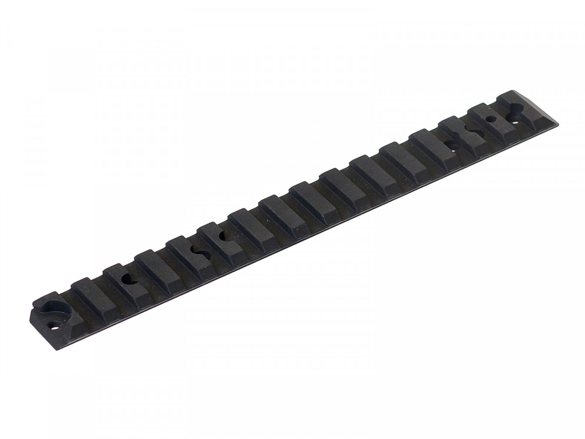 Oceľová čierna lišta Picatinny pre guľovnice Tikka T3x a T3. Skrutky a kolíčky sú súčasťou balenia. Celková dĺžka lišty je 164 mm. (starý kód S585T334, nový kód S54065187)