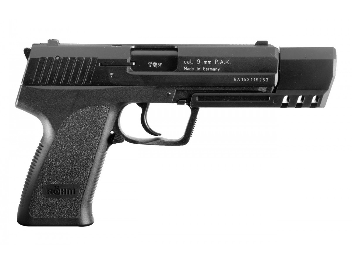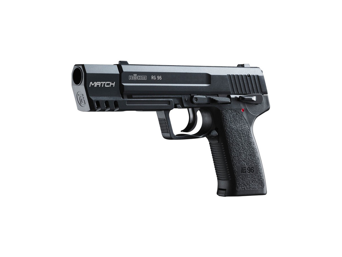 Expanzná (štartovacia a plynová) pištoľ Röhm RG 96 Match, čierna, polymérový rám, kal. 9mm P.A.K., kapacita zásobníka 9 nábojok, dĺžka 225 mm, hmotnosť 820 g. Závažie je spojené s hlavňou pomocou adaptéra pre signálne strelivo, montážny kľúč je súčasťou balenia. Adaptér je možné pripojiť bez závažia. Ak je pripojené závažie (alebo len samostatný adaptér), nie je možné strieľať plynové nábojky…..