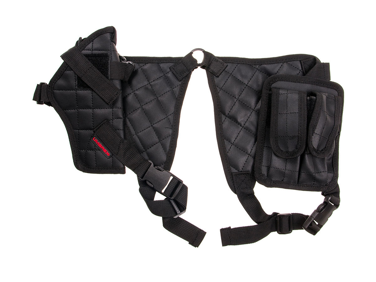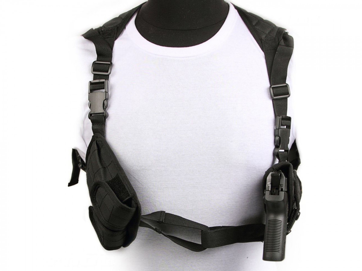 Nylonové puzdro vhodné aj pre ľavákov s kapsami na dva náhradné zásobníky. Pre veľké pištole a revolvery (napr. GPDA9, Double Eagle, Detective Special, P30, 92, Python, PK380, PPQ M2, P99, P88).