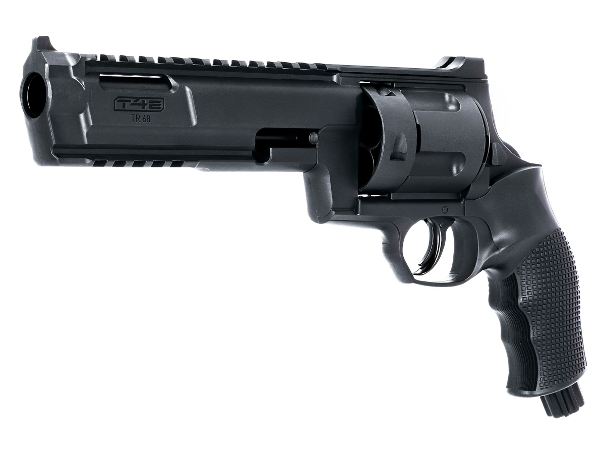 Revolver T4E TR 68 kombinuje najvýkonnejší kaliber série T4E (priemer cca 17.3 mm) so spoľahlivou technológiou CO2 a s maximálnym výkonnom až 16 joulov. Ľahko nabíjateľný rotačný zásobník pojme päť projektilov. Zdroj energie zaisťuje CO2 bombička umiestnená v rukoväti. Vďaka pokročilej funkcii Quick-Piercing je bombička aktivovaná nie hneď pri jej vložení, ale až ľahkým úderom na spodok rukoväte, vďaka čomu je zbraň vždy pripravená a rýchlo použiteľná. Optický a hmatový indikátor tlaku. Picatiny lišta so šírkou 22 mm na inštaláciu laserového zameriavača alebo svietidla. Masívne prevedenie vystraší každého útočníka. Textúrovaný povrch rukoväte zaistí bezpečný úchop aj v stresových situáciách a pri páde dokáže náhodnému výstrelu zabrániť spúšťová poistka.