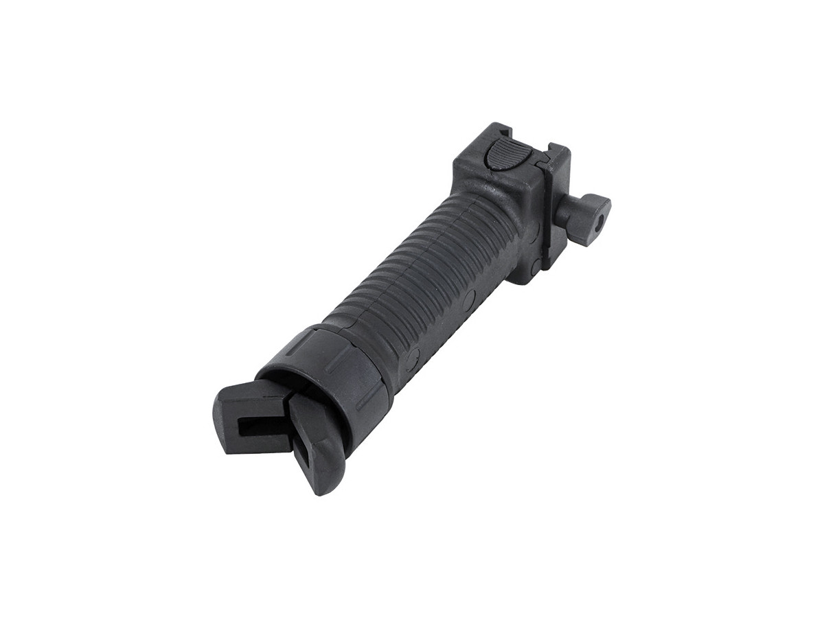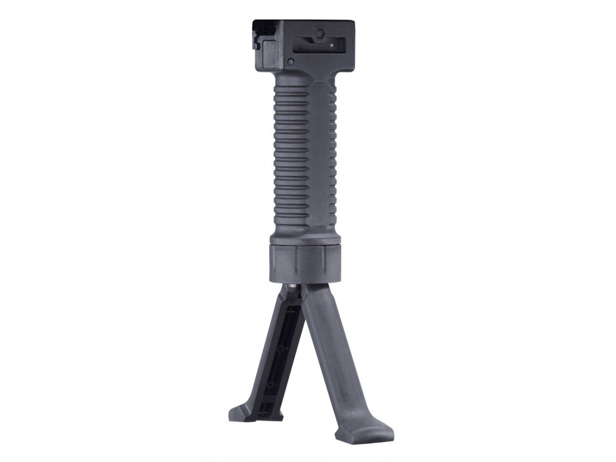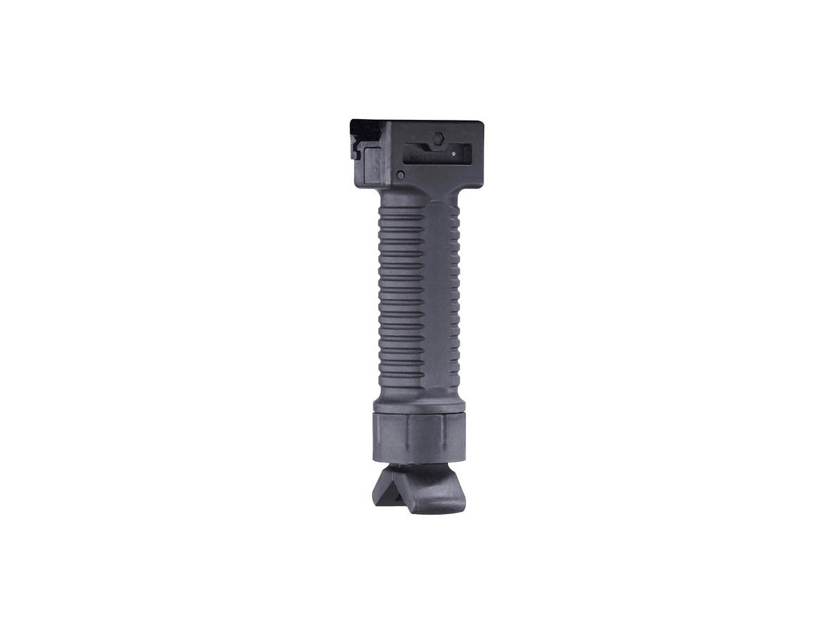 UX TBP 1 – taktická rukoväť a bipod v jednom, výborné a praktické riešenie pre rôzne situácie. Vysúvacie nožičky sú zasunuté v rukoväti po stlačení tlačidla sa automatický vysunú. Upínanie na picatinny lištu. Materiál: nárazuvzdorný polymér + kov.