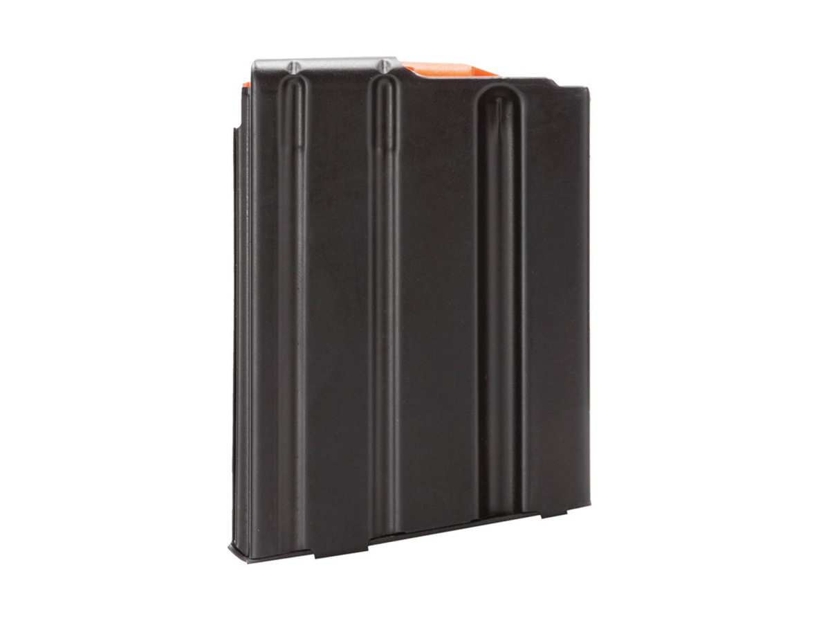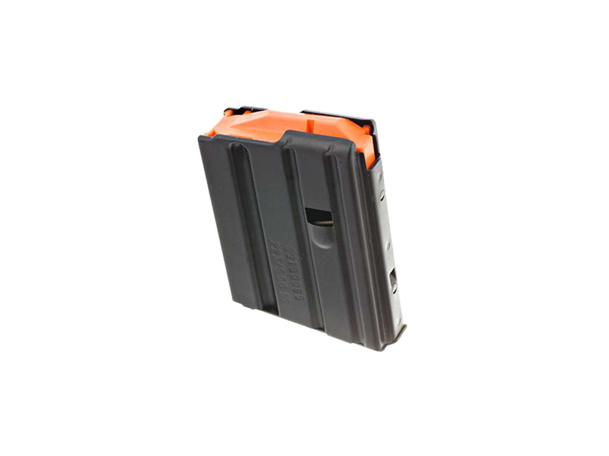 Kovový zásobník pre Ruger AR-556, kal. 5,56 NATO/.223 Rem, podávač oranžovej farby. Kapacita zásobníka 5 nábojov.