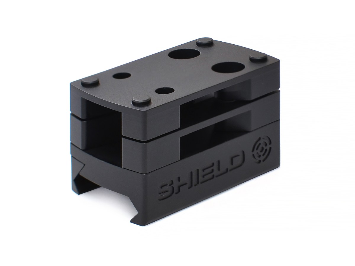 Hliníková montáž na Picatinny/Weaver lištu s dvomi prídavnými podložkami na zvýšenie. Slúži na uchytenie kolimátorov značky SHIELD SIGHTS a JPOINT na dlhé zbrane. (MNT-PICA-ALI-SMS/RMS)